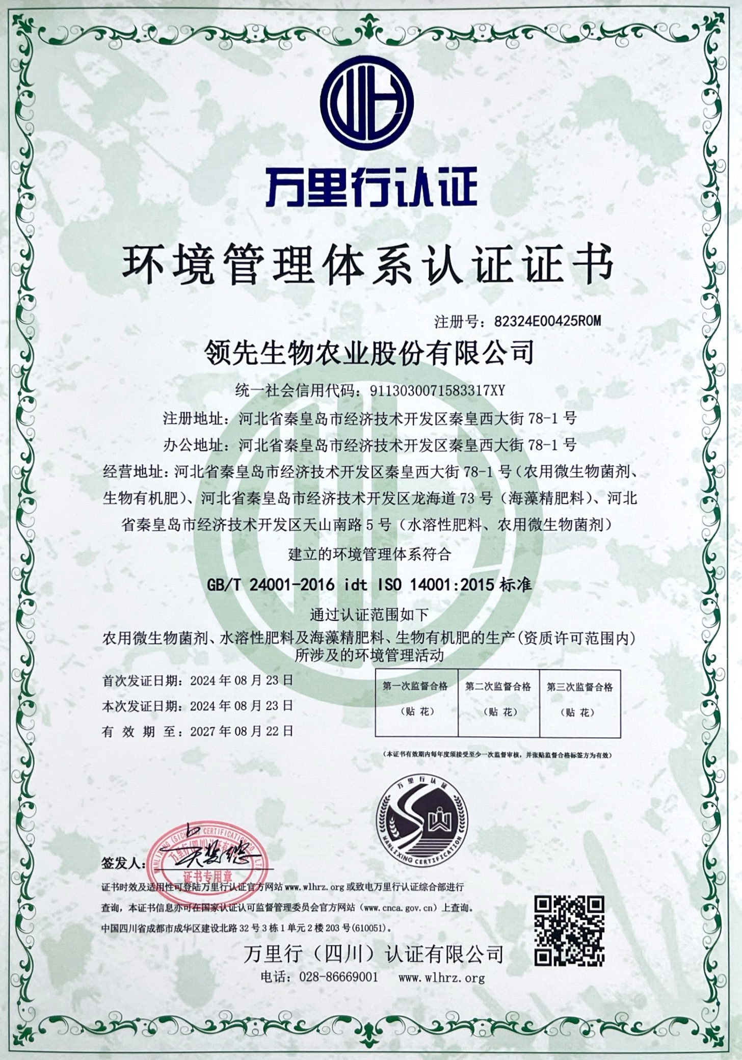 環(huán)境管理體系認(rèn)證證書